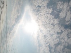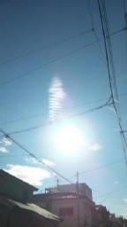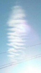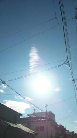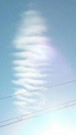 写真切り出してみました。 撮った時は気づかなかったのです(^^ゞ 撮った画像を見て、あれっと思って空を見直したら、こんな雲でした。 不思議な形ですね~(^O^)